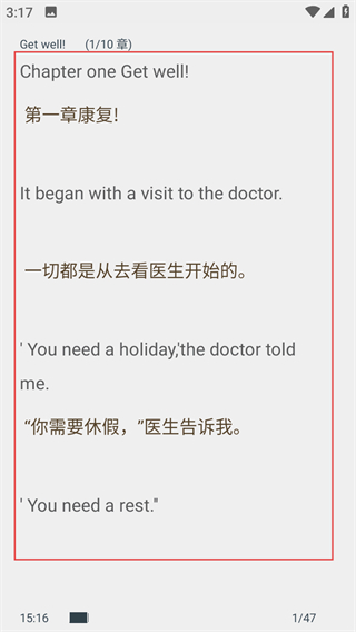 3、双语对照阅读:每本读物均提供中文与英文对照版本,用户可随时切换查看,遇到陌生词汇或复杂句式时,能通过中文释义快速理解,降低阅读难度,提升学习效率。