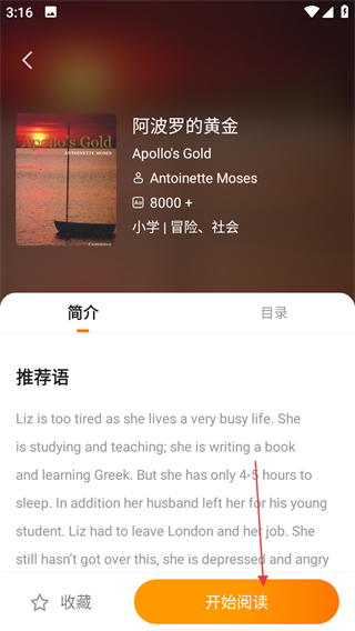 3、在书籍详情页面,点击开始阅读,进入书籍阅读页面。