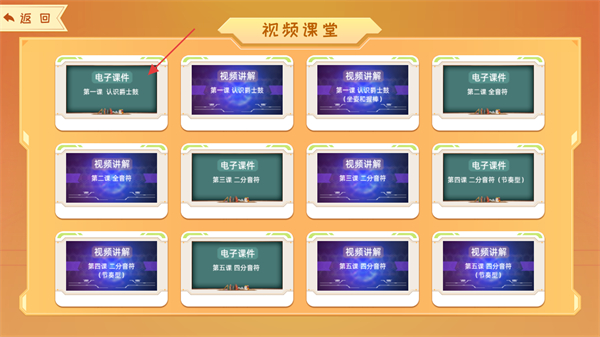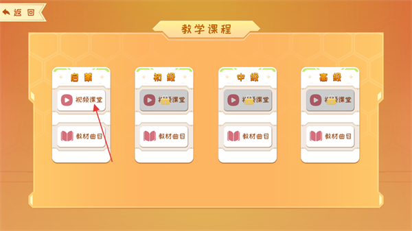 2、在教学课程页面,点击启蒙分类下的视频课堂,进入视频课堂页面。