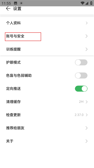 3、在设置页面,点击账号与安全,进入账号与安全页面。
