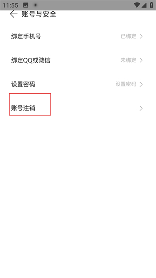 4、在账号与安全页面,点击账号注销,进入注销声明页面。