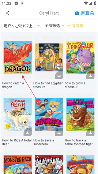 3、在CarylHart系列绘本页面,点击Howtocatchadragon绘本,进入绘本阅读页面。
