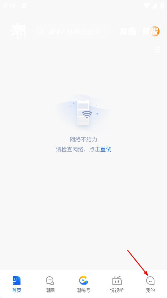 2、进入潮新闻界面,点击页面右下角我的选项。