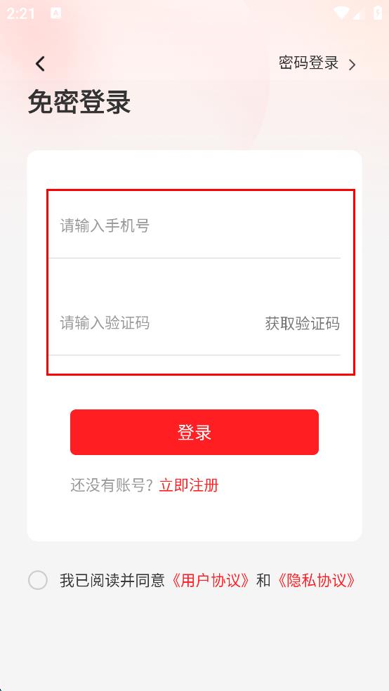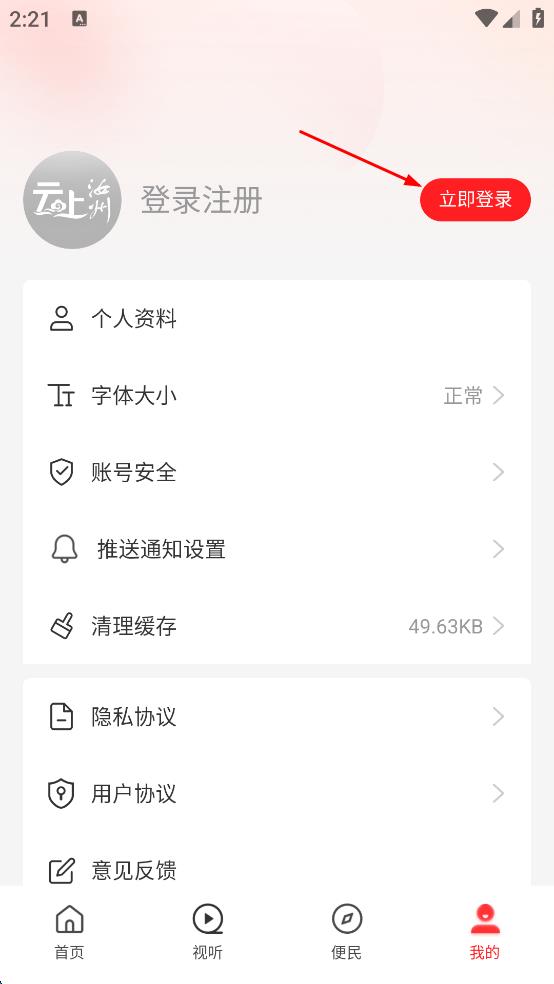 2、在“我的”页面,点击“立即登录”按钮,进入登录页面。