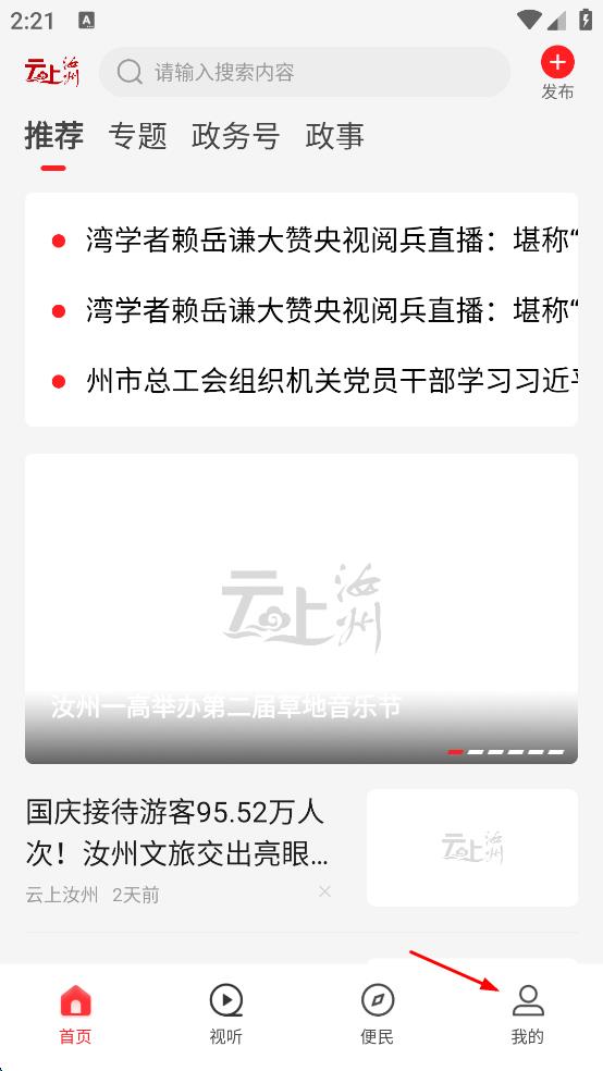 1、打开云上汝州APP,进入首页后,点击页面右下角的“我的”按钮。