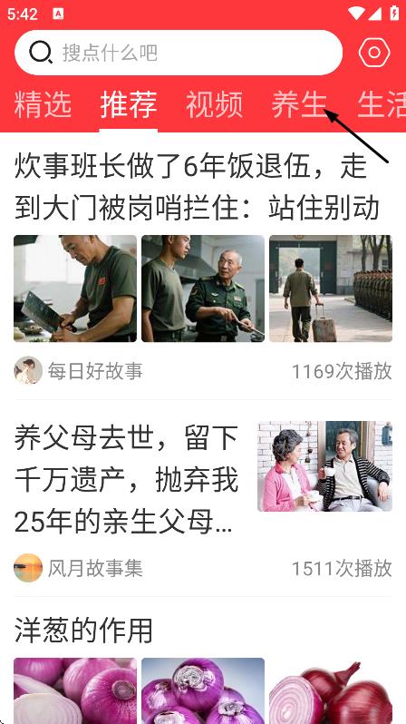 2、在每日快闻主页面,点击养生,切换到养生类内容页面。