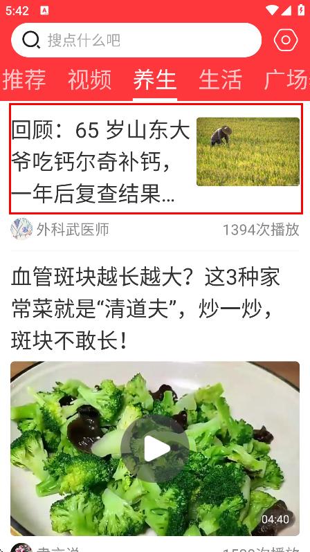3、在养生类内容页面,选择感兴趣的内容,进入内容详情页面。