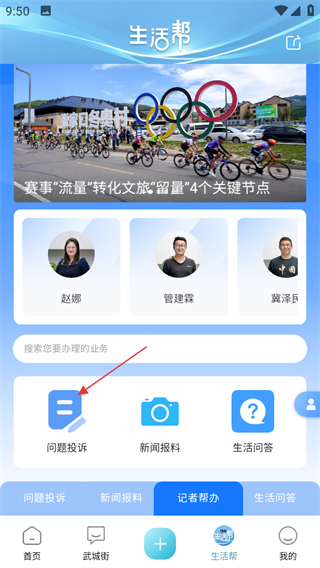 2、在生活帮页面,点击问题投诉,进入手机号登录页面。