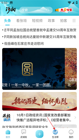 1、点击河山新闻页面底部的生活帮,进入生活帮页面。