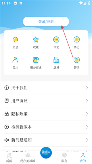 2、在个人中心页面,点击登录注册,进入登录注册页面。