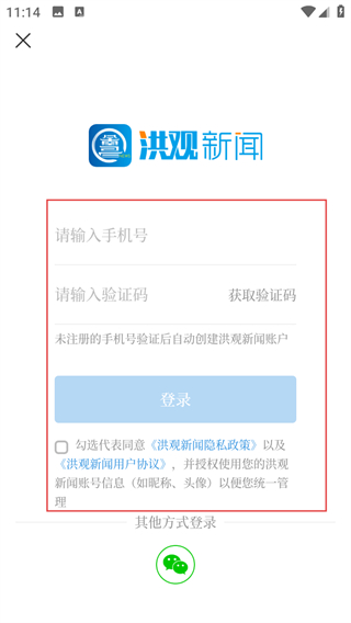 3、在登录注册页面,输入信息,勾选协议后点击登录完成登录。
