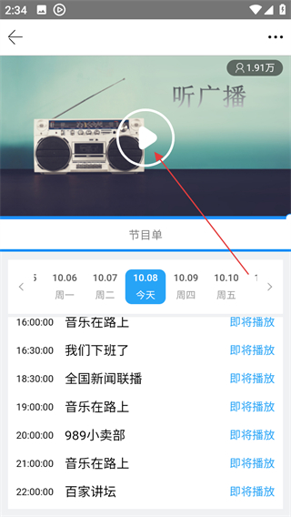 4、在广播播放页面,点击播放按钮,即可收听广播节目。