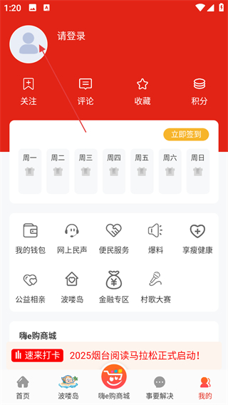 2、在个人中心页面,点击头像位置的请登录,进入登录页面。