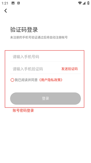 4、输入信息,勾选协议后点击登录,手机号验证后自动注册账号。