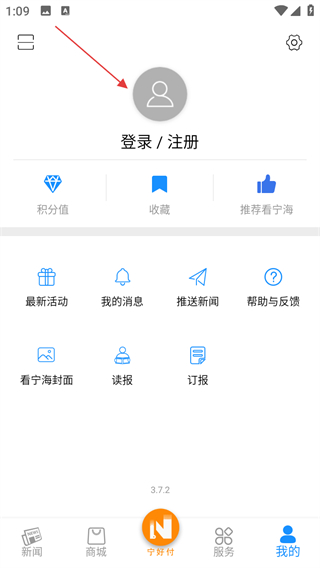 2、在个人中心页面,点击登录注册,进入登录注册页面。