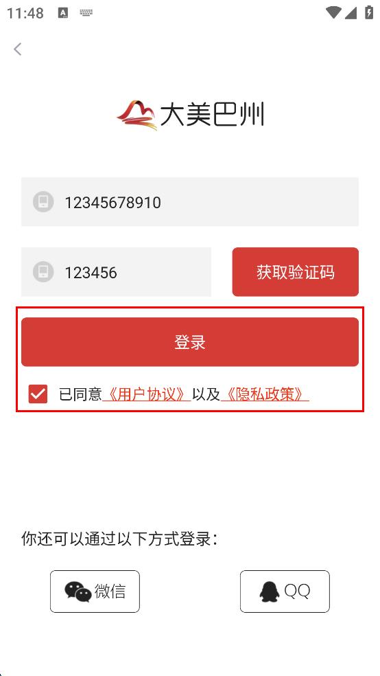 4、勾选“已同意用户协议以及隐私政策”,然后点击“登录”按钮。