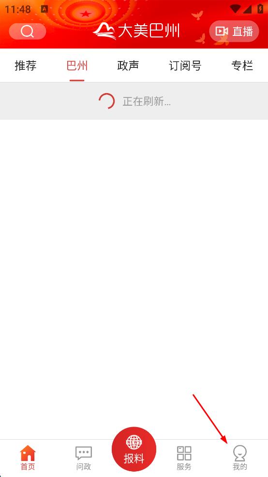 1、打开大美巴州APP,进入首页后,点击页面右下角的“我的”按钮。