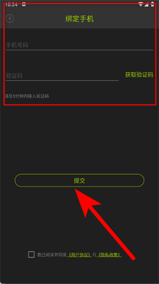 4、输入手机号码,点击获取验证码,填写收到的验证码后勾选后点击提交,完成账号注册。