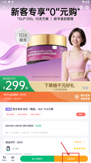 4、在详情页面,点击立即购买按钮,进行商品购买操作。