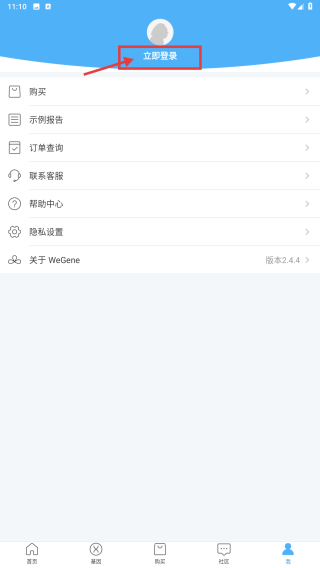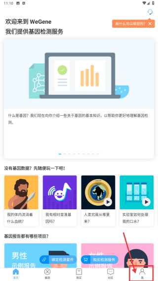 1、打开WeGene应用,点击底部我选项,进入个人中心页面。