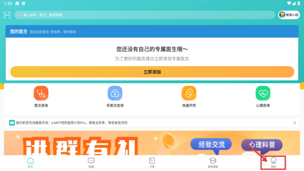 1、打开医疗类应用,点击底部我的选项,进入个人中心页面。
