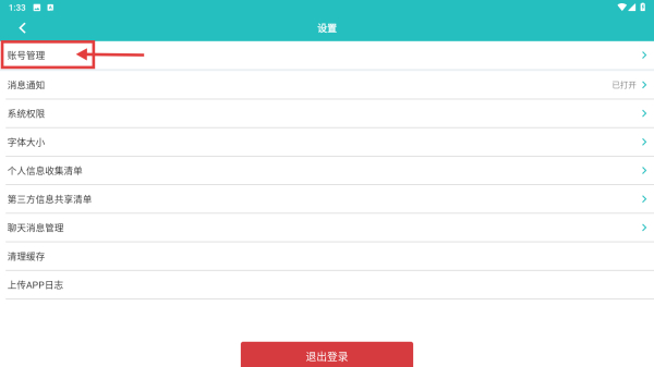 3、在设置界面,点击账号管理选项,进入账号管理页面。