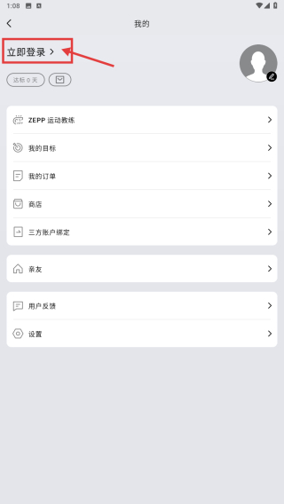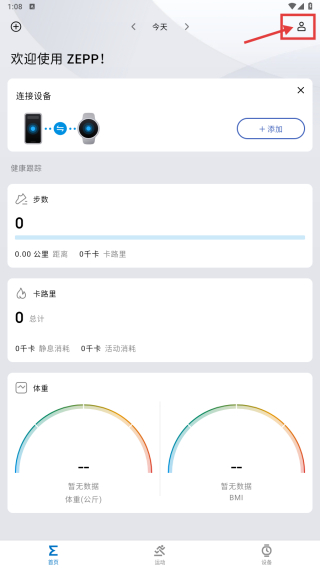 1、打开ZEPP应用,点击右上角个人图标,进入我的页面。