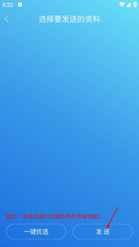 4、在选择要发送的资料页面,根据需求选择资料后,点击“发送”按钮,开始传输资料。