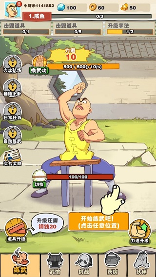 《劈山大师》是一款模拟功夫修行的休闲放置游戏!在游戏中,你将扮演一位武术大师,破坏各种奇特道具,锻炼身体各个部位,成为人间武器,力劈华山!