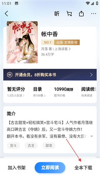 3、在书籍详情页面,点击全本下载,进入购买页面。