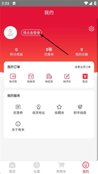 1、在有米日记首页,点击底部我的,进入我的页面。