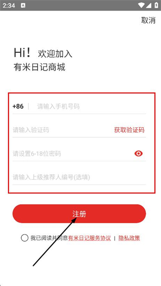4、填写手机号码、验证码、密码等信息后,点击注册,完成账号注册。