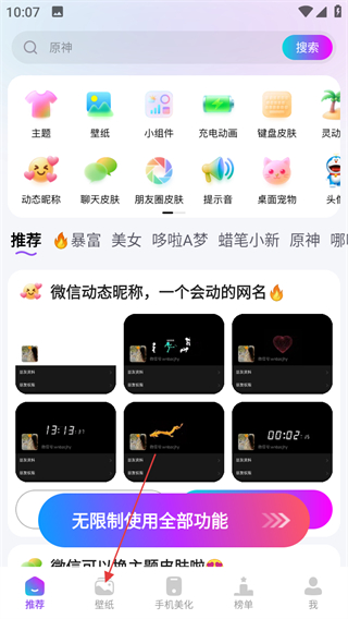 1、进入软件推荐页面,点击底部壁纸,进入壁纸页面。