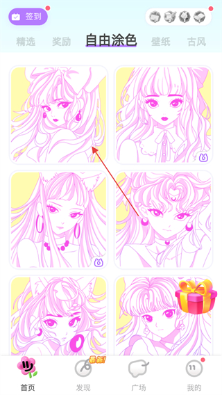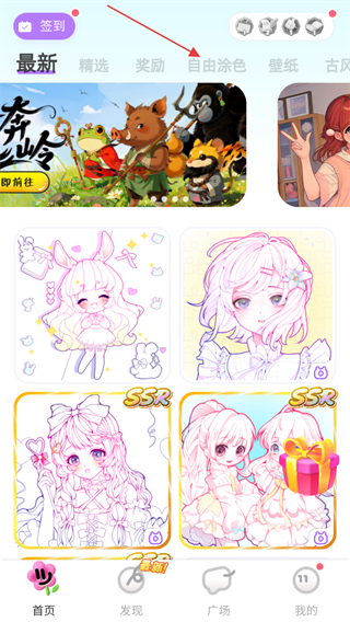 1、进入软件首页,点击自由涂色,进入自由涂色页面。
