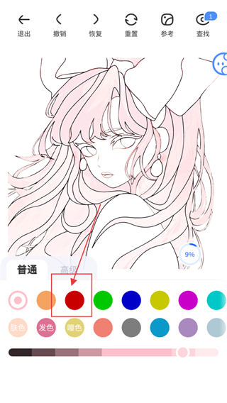 3、在涂色编辑页面,选择颜色如红色,准备给图片上色。