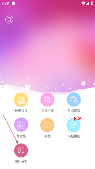 1、进入软件主界面,点击图片分割,进入图片分割设置页面。