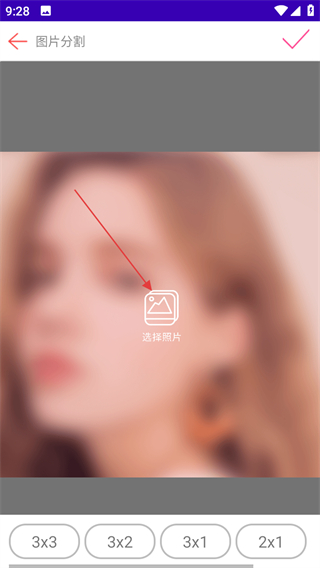 4、在分割页面,选择分割样式后,点击右上角对勾图标,完成图片分割。