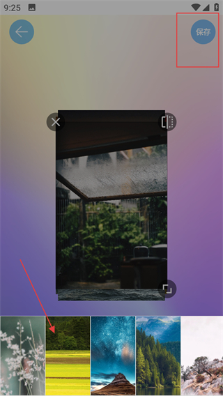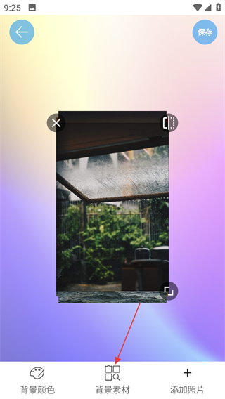 5、选择好背景素材后,点击右上角保存,完成拼接并保存。