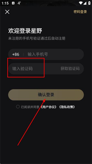2、在登录页面填写手机号,勾选协议后,点击获取验证码。