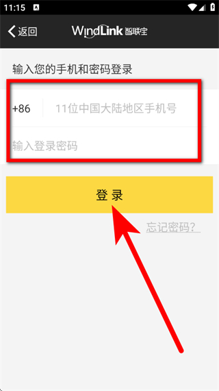 4、在登录页面,爱人手机号与密码,点击登录,完成登录。
