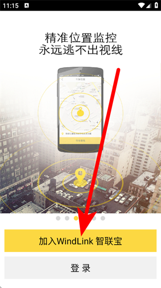 2、在引导页,点击加入WindLink智联宝,进入账号注册登录界面。