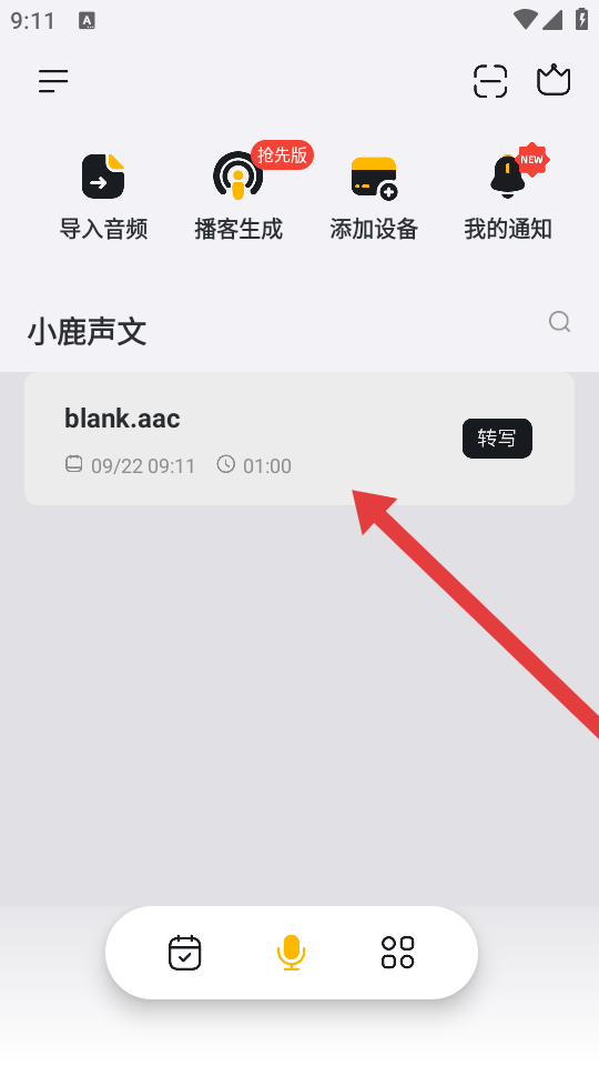 4、导入完成后,文件会显示在主界面,可进行转写等后续操作。