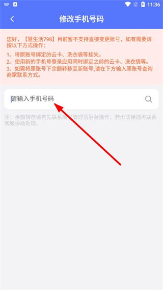 4、按页面提示,先挂失原账号绑定的云卡、洗衣袋,再用新手机号登录并重新绑定。