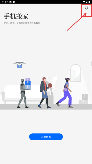 1、打开手机搬家类应用,点击右上角设置按钮,进入设置页面。