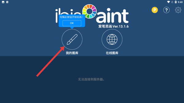 3、完成前期设置后,在ibisPaint主界面点击我的图库图标,准备进入个人绘画作品管理页面开始使用。