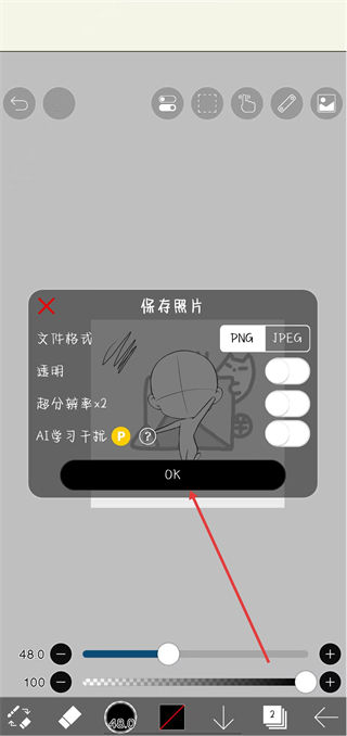 3、在编辑页面进行绘画、调整等操作,完成后点击底部下载图标。