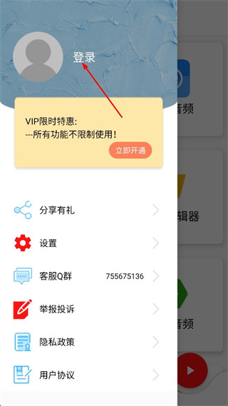 2、在侧边栏,点击“登录”区域,进入登录界面。