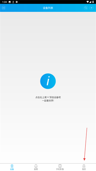 1、启动监控眼的APP,进入首页点击上方+号的按钮。