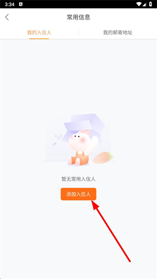 3、进入常用信息页面后,点击添加入住人按钮。