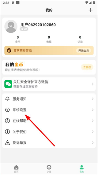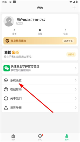 2、在我的页面,点击系统设置选项,进入设置页面。